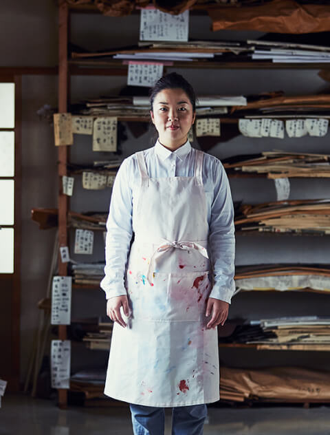 オリジナルテキスタイルブランド「ケイコロール」主宰。2008年京都造形芸術大学大学院修了。職人としては、ぼかし表現を得意としています。衣裳のデザインでは、柄を描くこともありますが、特に配色を主に担当しています。色合わせの際には、染料一滴単位で色を調整しています。